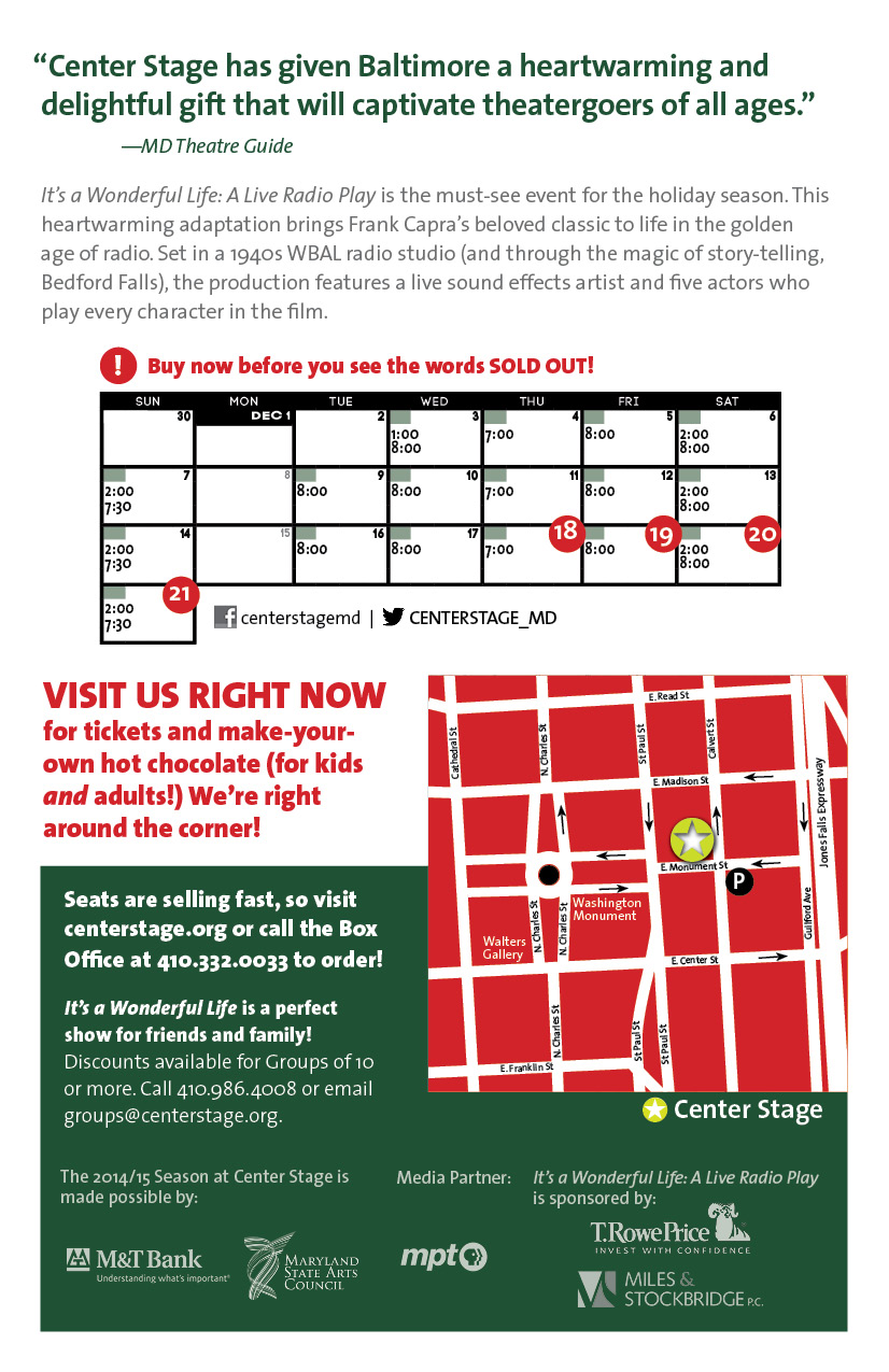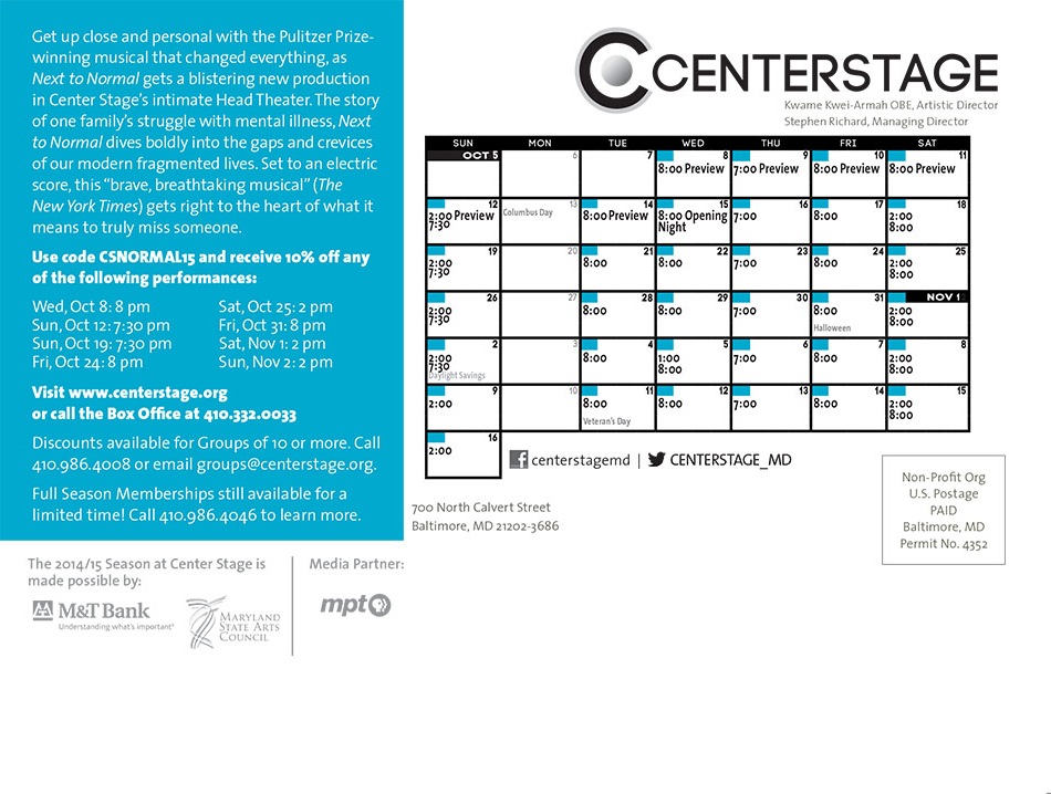 Work from the 2014/15 Season at Center Stage in Baltimore, MD. Ads, postcards, and flyers for the season’s shows, and mailers for the Young Playwrights Festival.