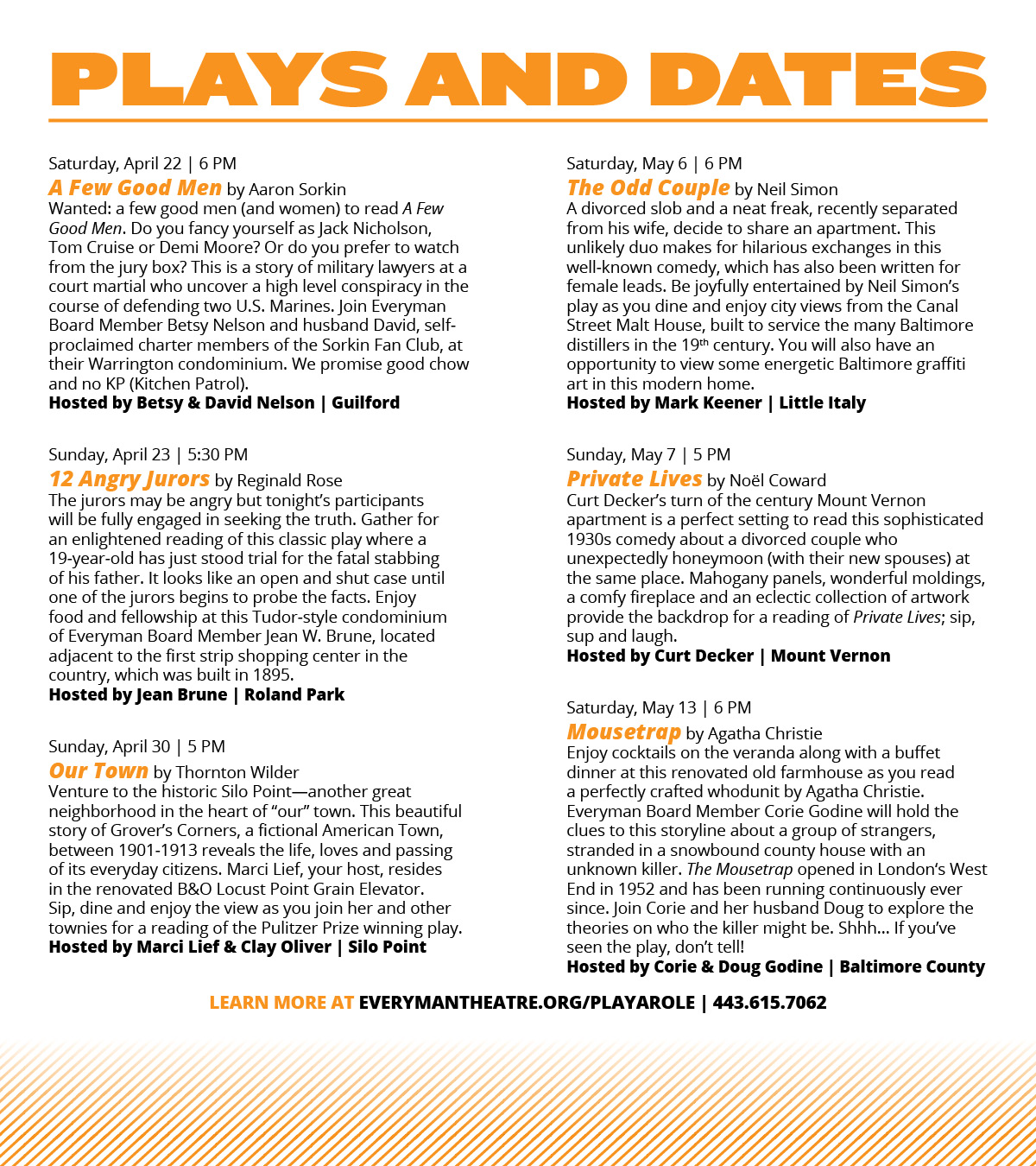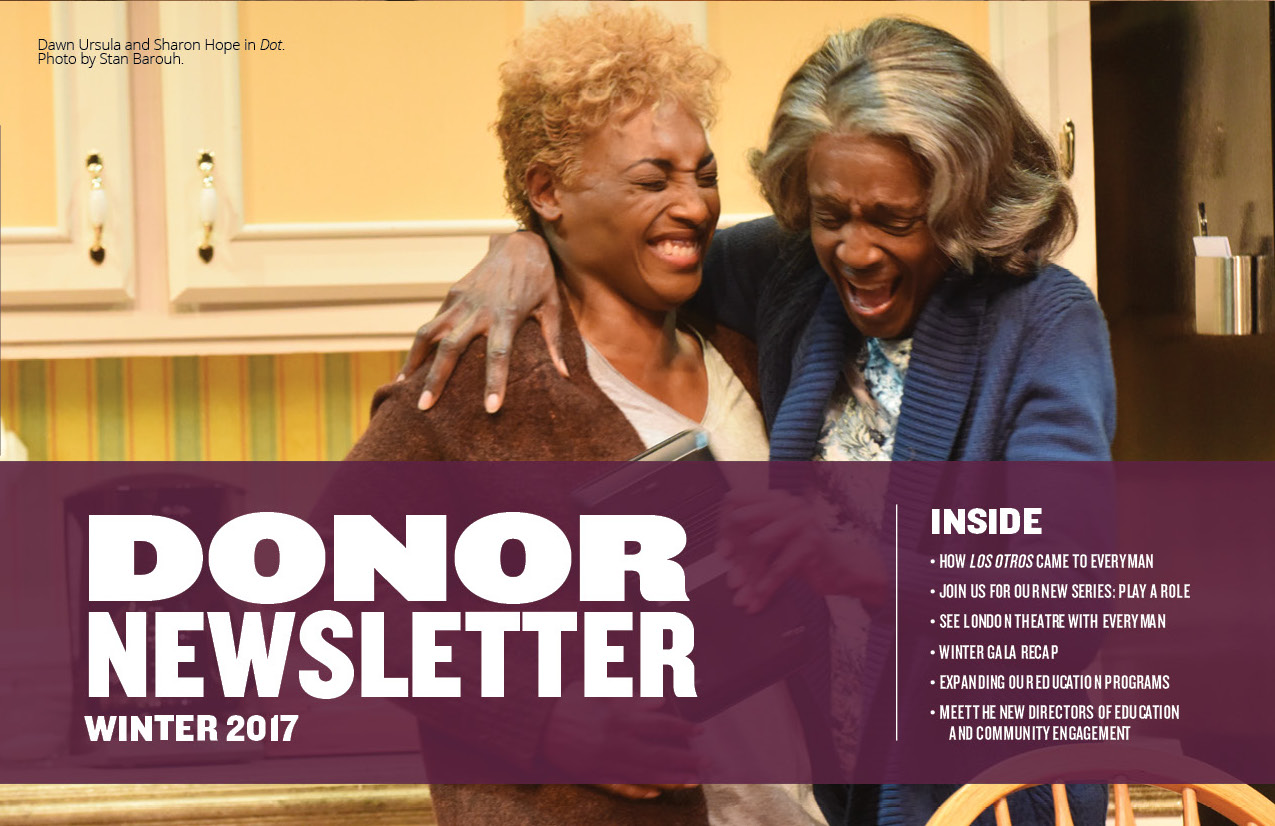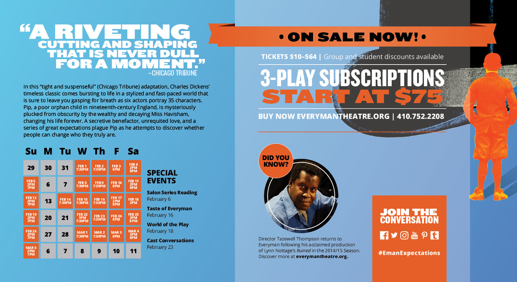 Work from the 2016/17 Season at Everyman Theatre: show programs, direct mail postcards, rack cards, newsletters, and posters.