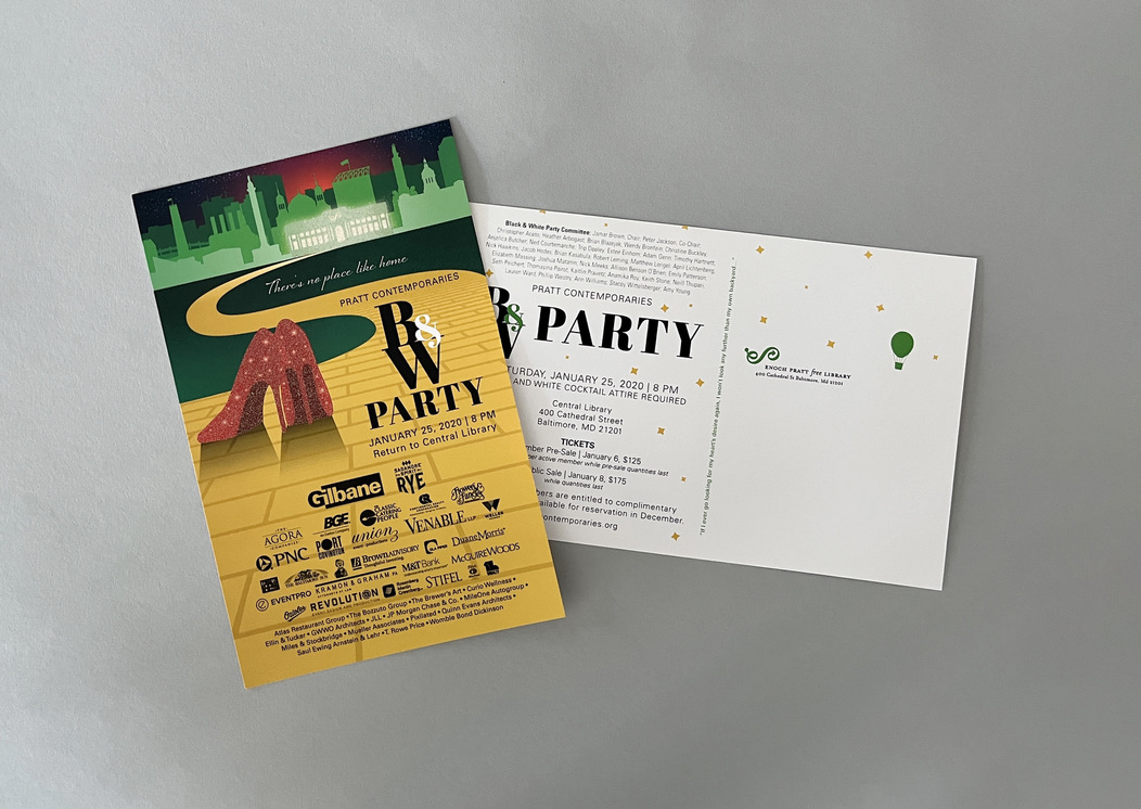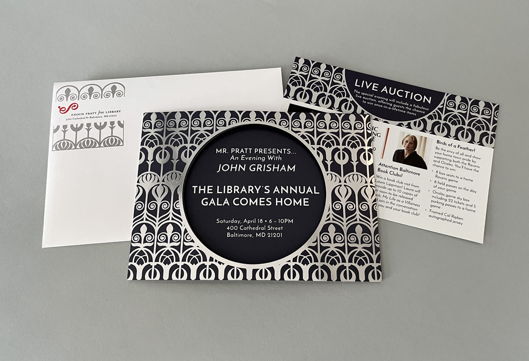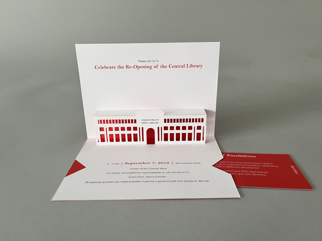 Invitations – Enoch Pratt Free Library Date: September 16, 2025Author: Katherine Marmion Category: Graphic Design, Invitations Post navigation ← Everyman Theatre 2017/18 Season Environmental Graphics – Enoch Pratt Free Library → Printed invitations to various Pratt Library events. Related